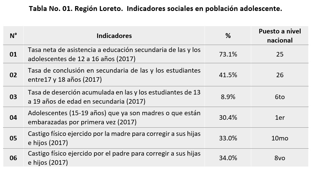 En Loreto, el embarazo adolescente se mantuvo en 30.4% en el 2014 y el 2017, siendo la región con el porcentaje más alto del país, situación que hasta fecha aún no disminuye de manera significativa.