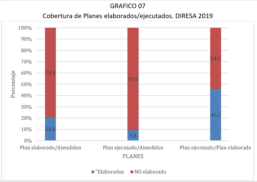 Según el reporte HIS, en Loreto en el 2019 se atendieron en los establecimientos de la DIRESA 49,443 adolescentes (36%). Del total de atendidos iniciaron un plan de atención el 20.6 %, de los cuales solo finalizaron el 9.4 %. Grafico 7